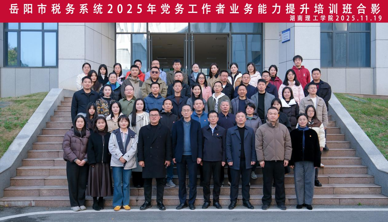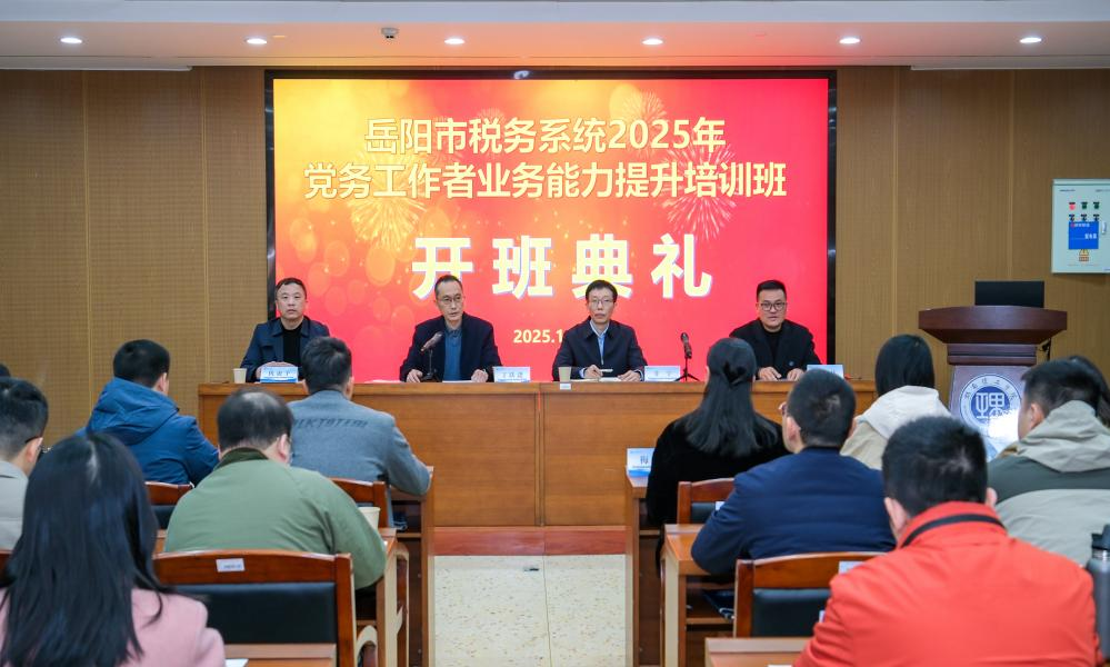 19日上午,2025年岳阳市税务系统党务工作者业务能力提升培训班在我校正式开班。出席典礼的领导有岳阳市税务局机关党委常务副书记甘宇、湖南理工学院党委委员、副校长丁跃浇、湖南理工学院继续教育学院院长仇虎子、院长助理廖武林以及岳阳市税务系统50位优秀党务工作干部。仪式由仇虎子主持。